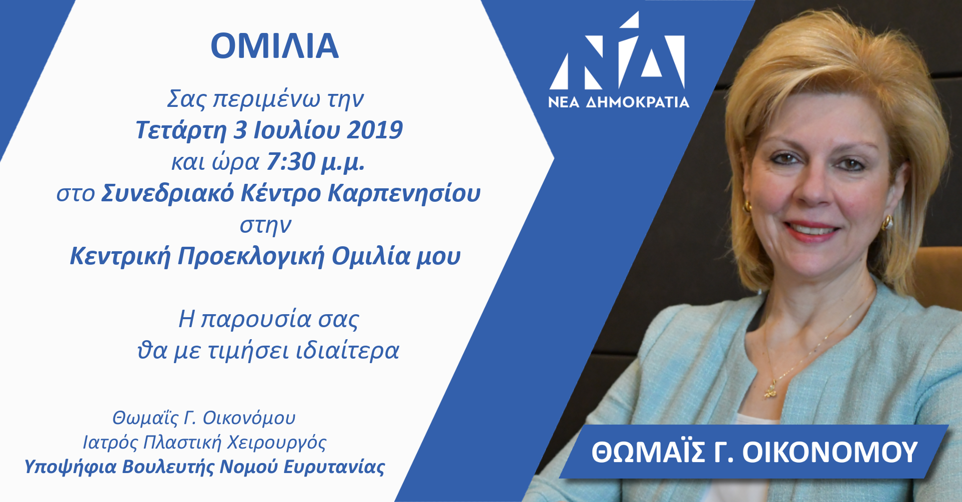 ΘΩΜΑΪΣ (ΤΖΙΝΑ) ΟΙΚΟΝΟΜΟΥ - Πολιτευτής ΝΔ Π.Ε. Ευρυτανίας - Πλαστική Χειρουργός