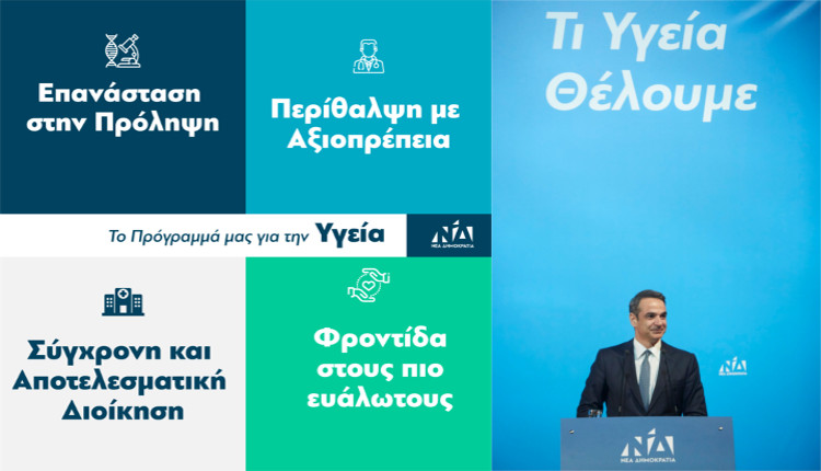Ο Πρόεδρος της ΝΔ κ. Κυριάκος Μητσοτάκης παρουσίασε σε ειδική εκδήλωση στον “Ελληνικό Κόσμο” το ολοκληρωμένο σχέδιο της ΝΔ για την Υγεία, βασισμένο στον σεβασμό προς τον πολίτη και στην εξασφάλιση ανθρώπινων και αξιοπρεπών συνθηκών περίθαλψης σε όλες τις δομές Υγείας.
