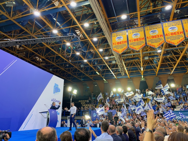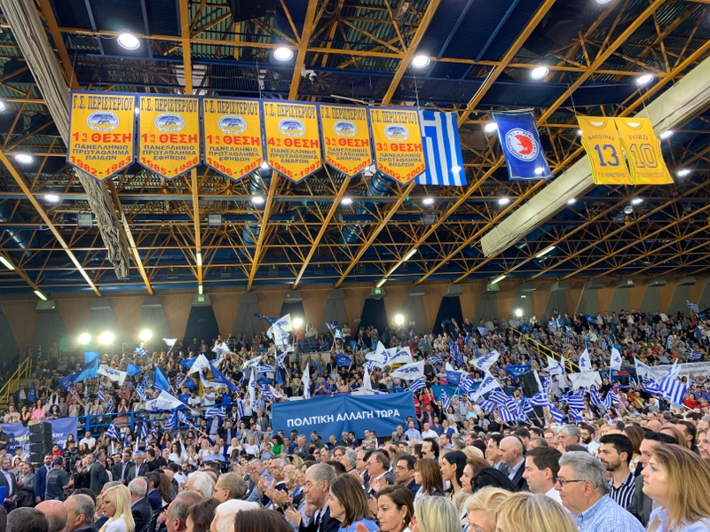 Τετάρτη 22 Μαΐου 2019. Κεντρική Προεκλογική Συγκέντρωση και ομιλία του Κυριάκου Μητσοτάκη στην Αθήνα, στο κλειστό γήπεδο “Ανδρέας Παπανδρέου” στο Περιστέρι.