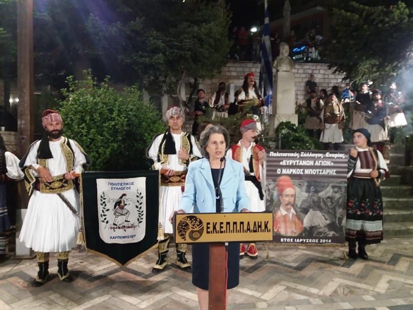 Ακολούθησαν χαιρετισμοί επισήμων, ομιλία από την Γενική Γραμματέα του Πολιτιστικού Συλλόγου Ενορίας Ευρυτάνων Αγίων “Μάρκος Μπότσαρης” κα Χρυσούλα Σουλιώτη και η τελετή αδελφοποίησης του Δήμου Καρπενησίου με τον Δήμο του ηρωικού Μεσολογγίου.