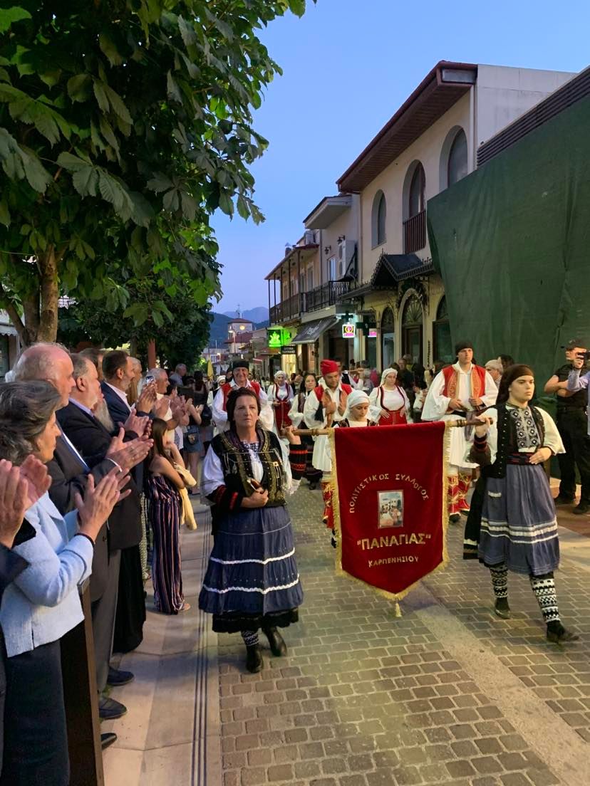 Οι εκδηλώσεις ξεκίνησαν με την πομπή Πολιτιστικών Συλλόγων και τη συμμετοχή Φιλαρμονικών στο κέντρο του Καρπενησίου.