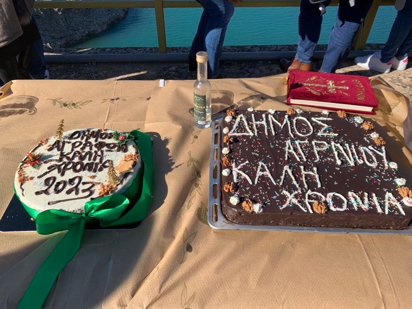 Στη συνέχεια κόψαμε τις πρωτοχρονιάτικες πίτες των Δήμων Αγράφων και Αγρινίου.