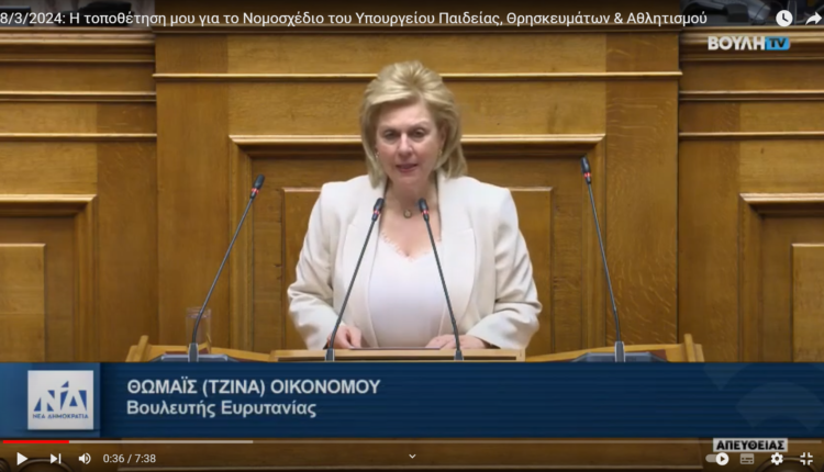 Η τοποθέτηση μου για το Νομοσχέδιο του Υπουργείου Παιδείας, Θρησκευμάτων και Αθλητισμού (Video)