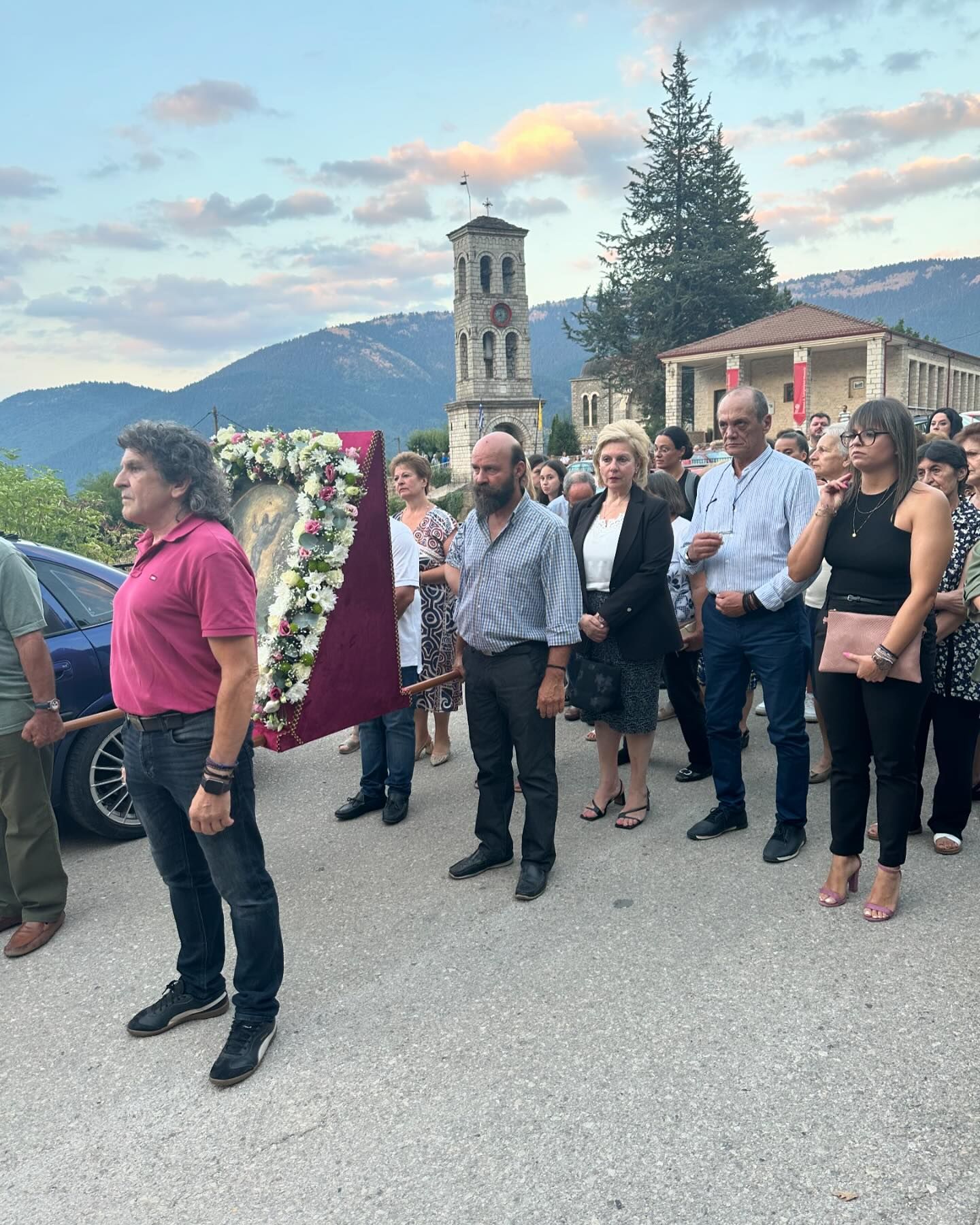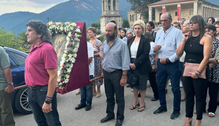 Παραμονή της Μεταμόρφωσης του Σωτήρος, στον Εσπερινό και την περιφορά της εικόνας, στο Παλαιό Μικρό Χωριό του Δήμου Καρπενησίου.