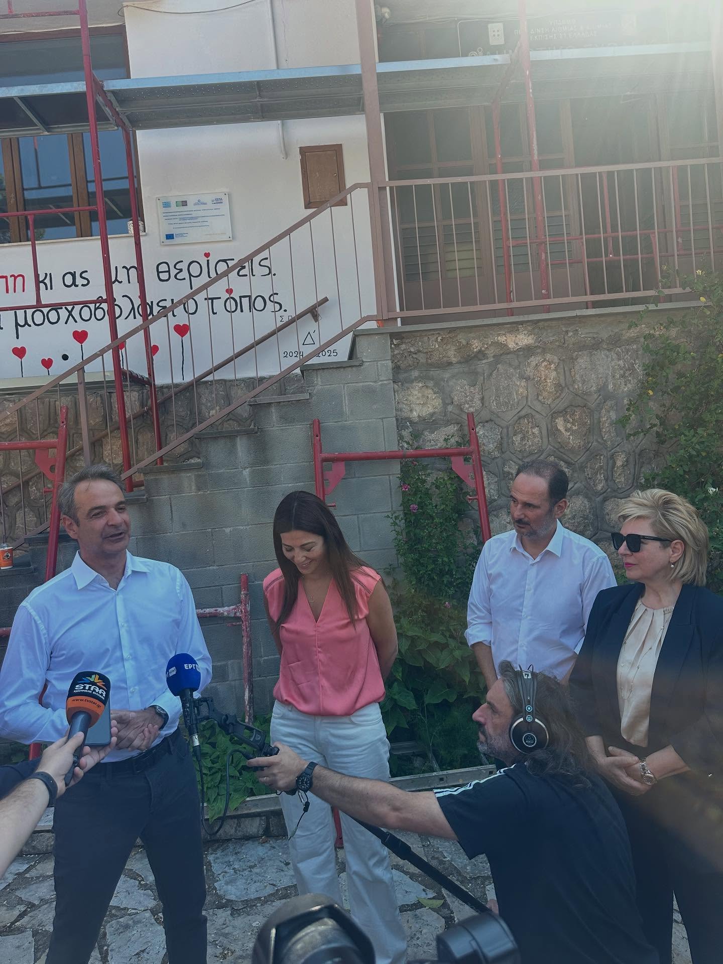 * Ο Πρωθυπουργός εξέφρασε τη σημασία που δίνει η Κυβέρνηση στην Παιδεία και στην αναβάθμιση των σχολικών υποδομών, ακόμη και στις πιο απομακρυσμένες περιοχές, έτσι ώστε τα σχολεία σε όλη τη χώρα, να είναι λειτουργικά, σύγχρονα, ασφαλή και προσβάσιμα σε άτομα με αναπηρία.