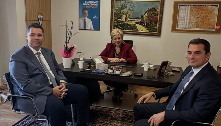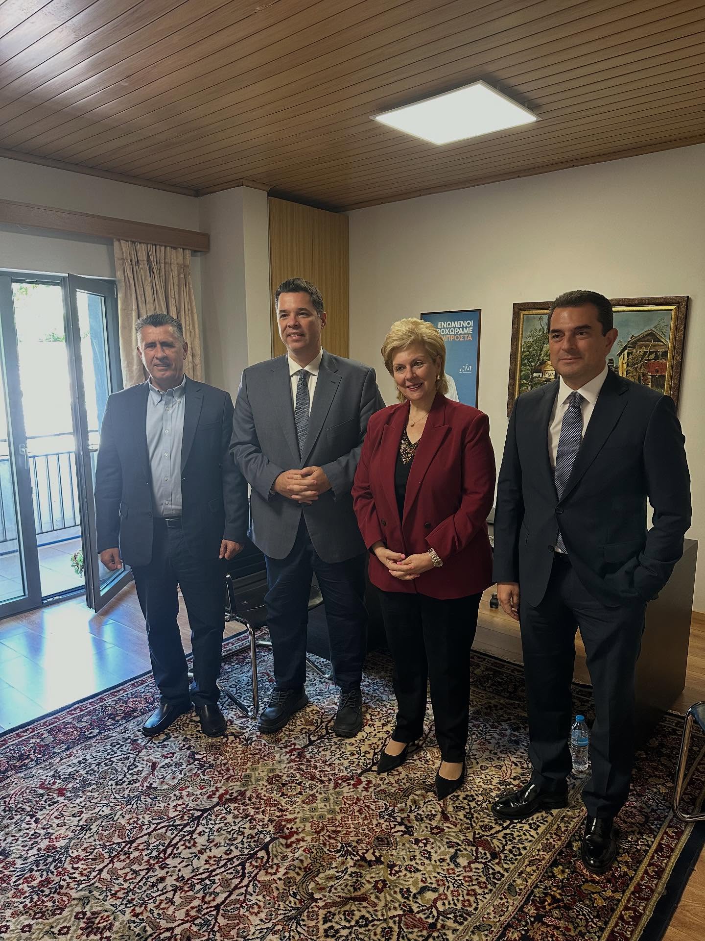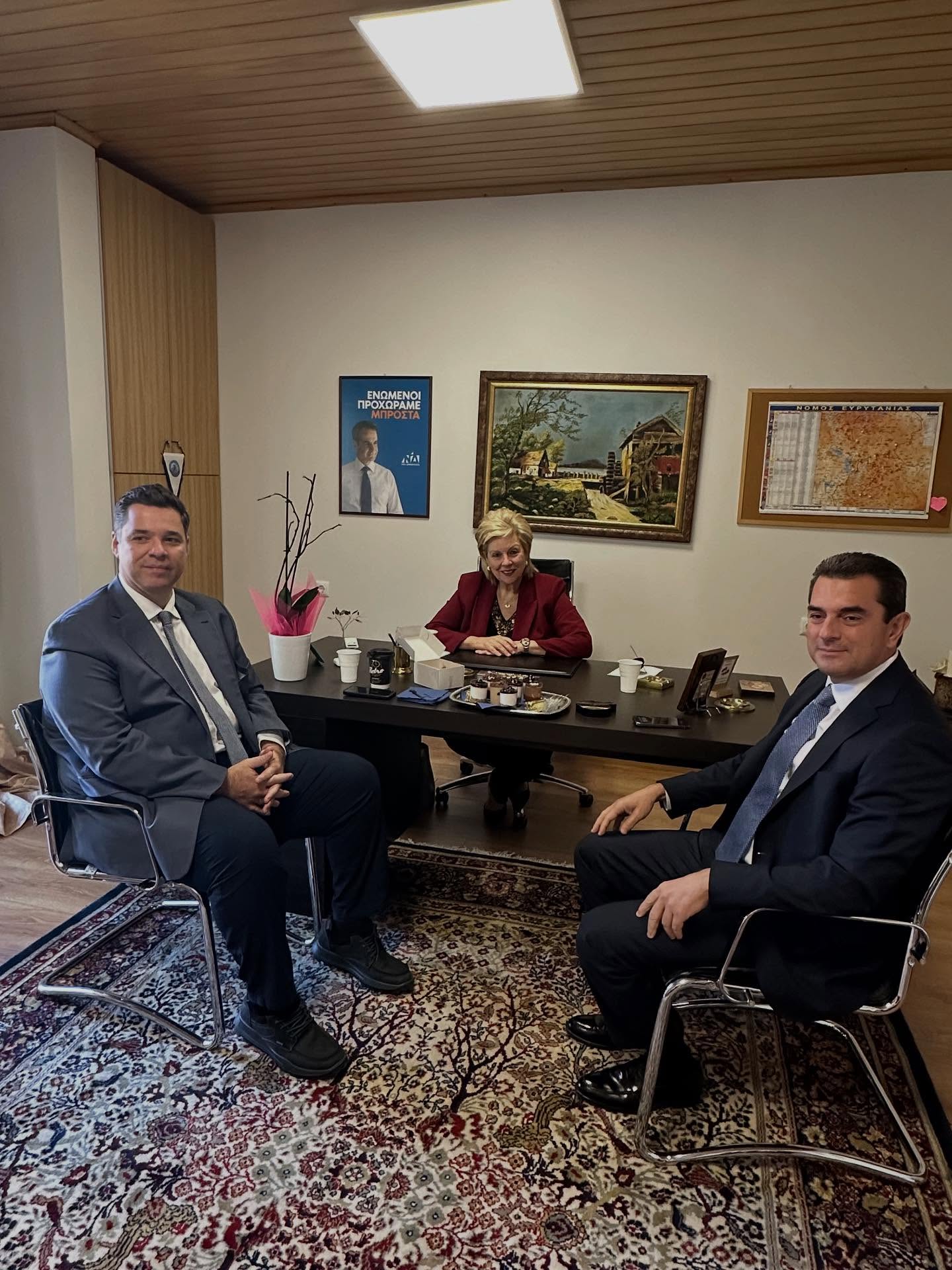 * Με μεγάλη χαρά υποδέχτηκα στο γραφείο μου στο Καρπενήσι, τον Υφυπουργό παρά τω Πρωθυπουργώ Θανάση Κοντογεώργη, τον Γραμματέα της Πολιτικής Επιτροπής της ΝΔ και βουλευτή Τρικάλων Κώστα Σκρέκα και τον ειδικό σύμβουλο του Πρωθυπουργού Θανάση Νέζη.